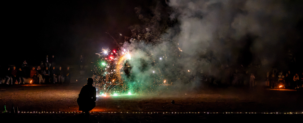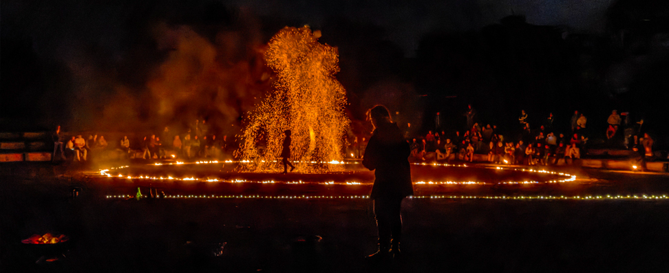 Pour l’occasion, la commune procède à l’extinction totale de son éclairage public. Seul l’éclairage de dizaines de torches romaines et de centaines de bougies balise le site